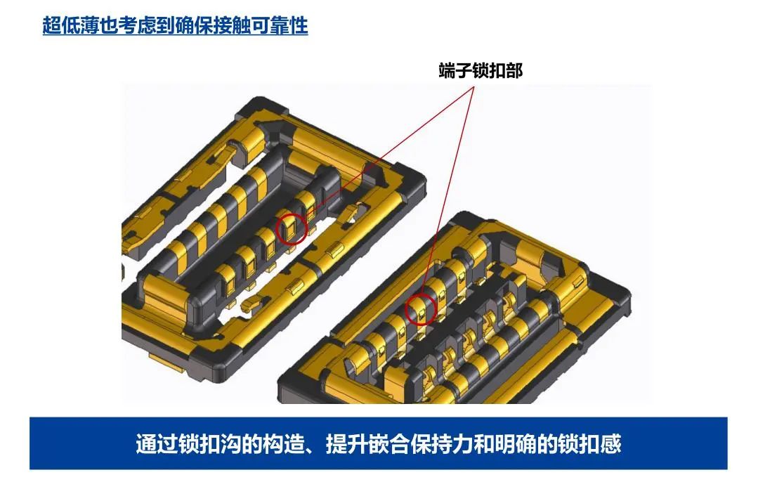 尺寸 省空間 防燥對(duì)策 RF特性(連接器單體) RF特性(連接器+FPC) 牢固構(gòu)造 端子鎖扣構(gòu)造 通過(guò)金屬誘導(dǎo)實(shí)現(xiàn)了較大的自校正量