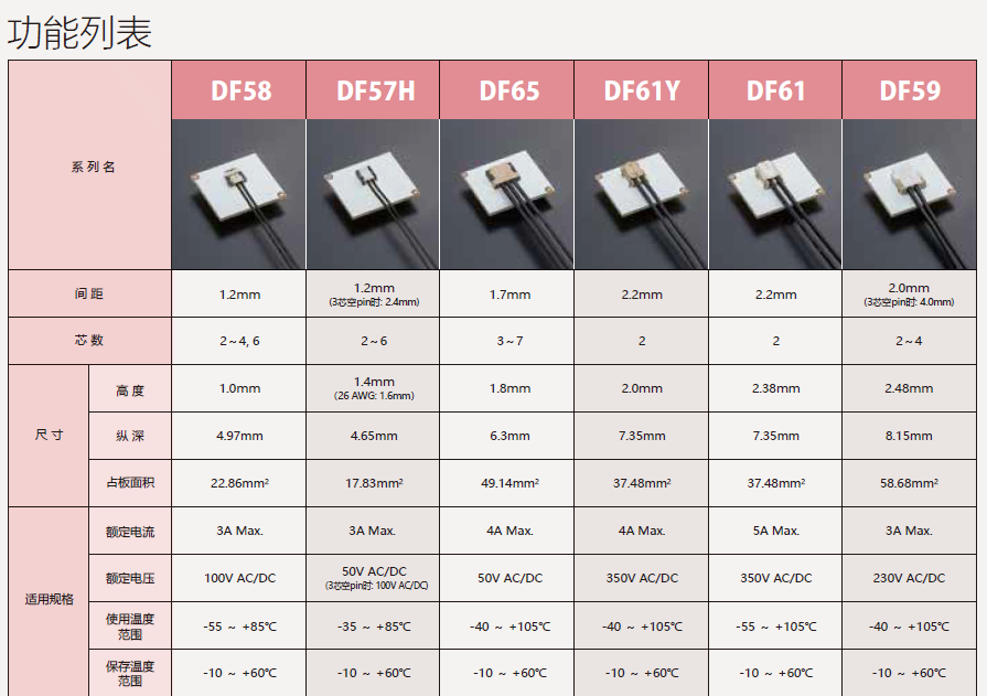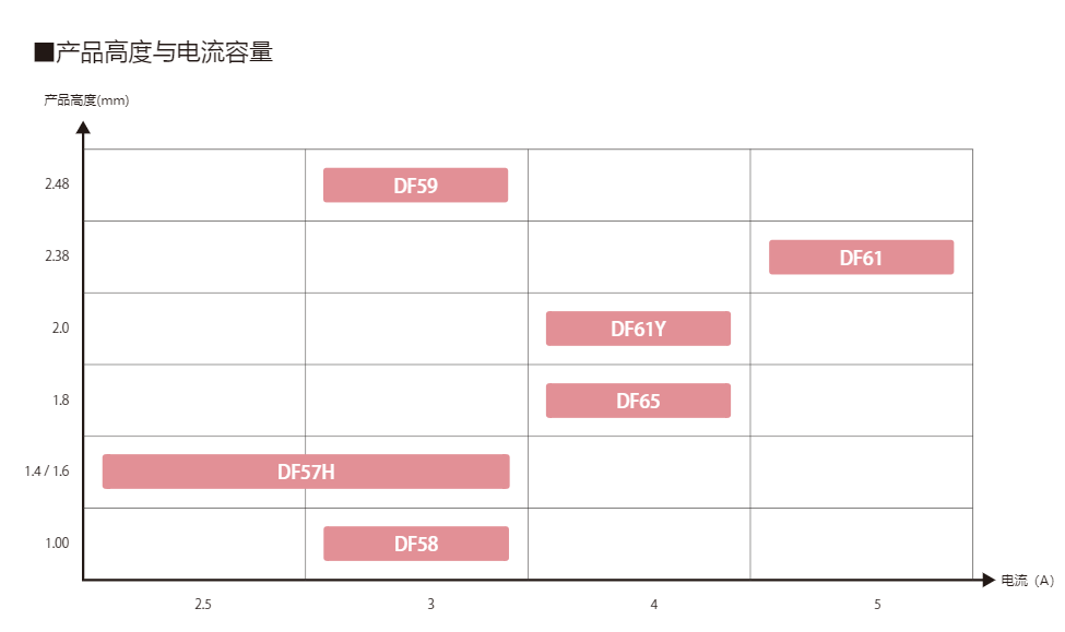 該連接器實現(xiàn)了大電流、省空間,高度為2.0mm。對比DF61,有著更為低薄的構(gòu)造。小型緊湊,同時支持大電流。